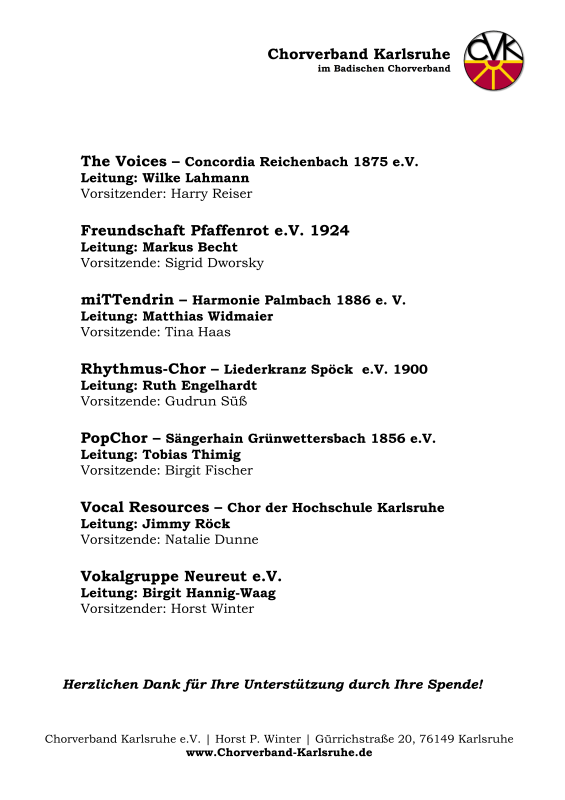 Die Chöre/Vereine des Chorverbandes Karlsruhe sind aktiv!
