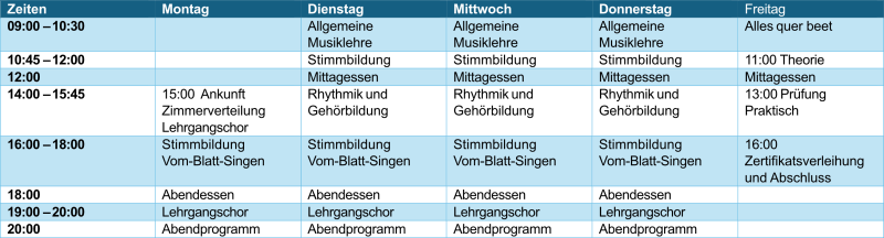 incl. Übernachtung im Mehrbettzimmer in der Kompaktwoche und Verpflegung an allen Tagen, Theorie-LernApp und Einzelstimmbildung.