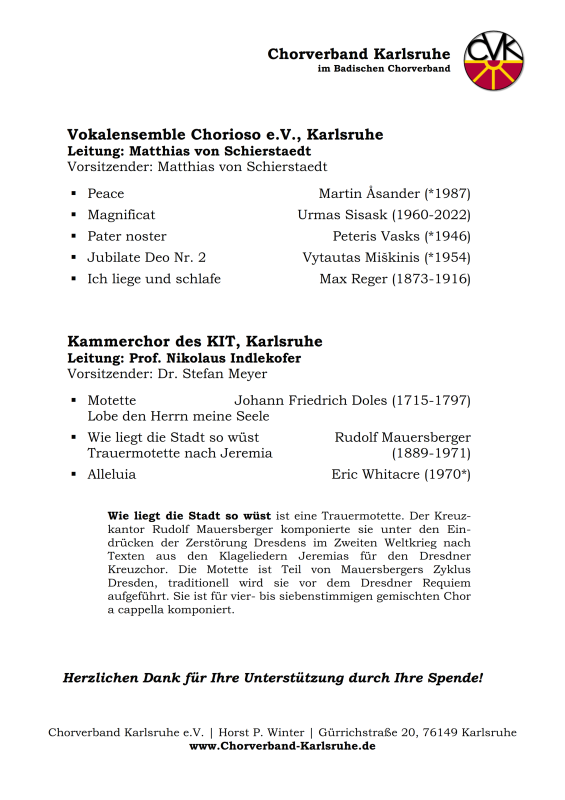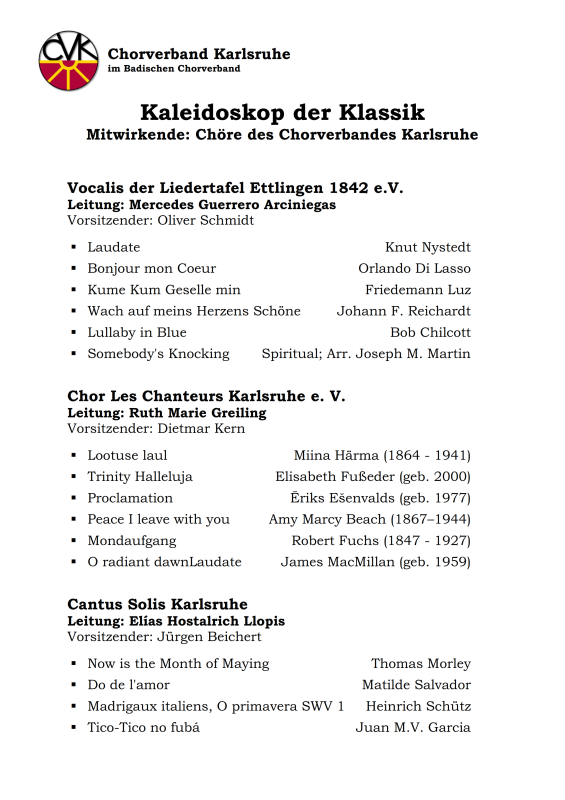 Die Vielfalt der Karlsruher Chorlandschaft zeigt sich in den Konzerten und Veranstaltungen unsere Chöre.